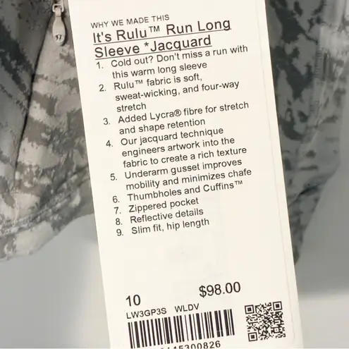Lululemon It’s Rulu Run Long Sleeve Jacquard Size 10 Liquidize Camo NEW Size 10 New With Tags Never... Show more