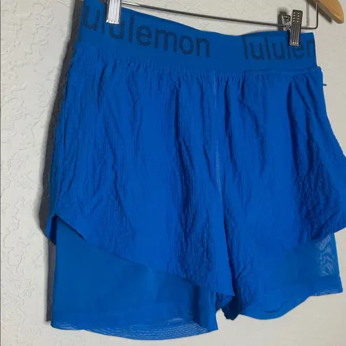 Lululemon Logo Waistband High-Rise Training Shorts Size 8 Poolside Blue Athletic Running Athleisure... Show more