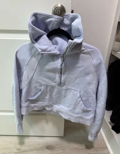 Cozy light purple half-zip hoodie with a front pocket. - worn a few - has a ink mark on the right... Show more