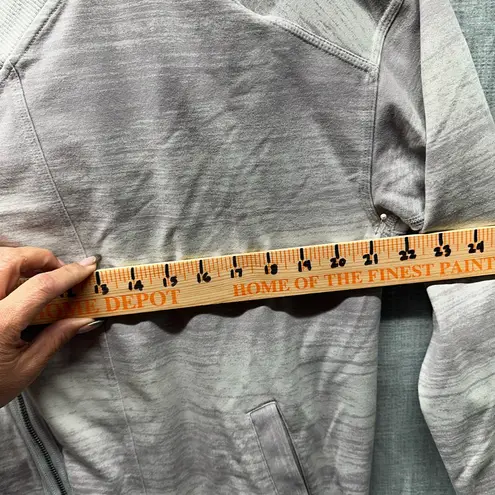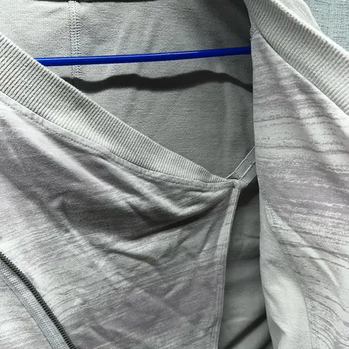 Lululemon jacket for women, in a silverspoon color with an asymmetrical full zipper closure and slan... Show more