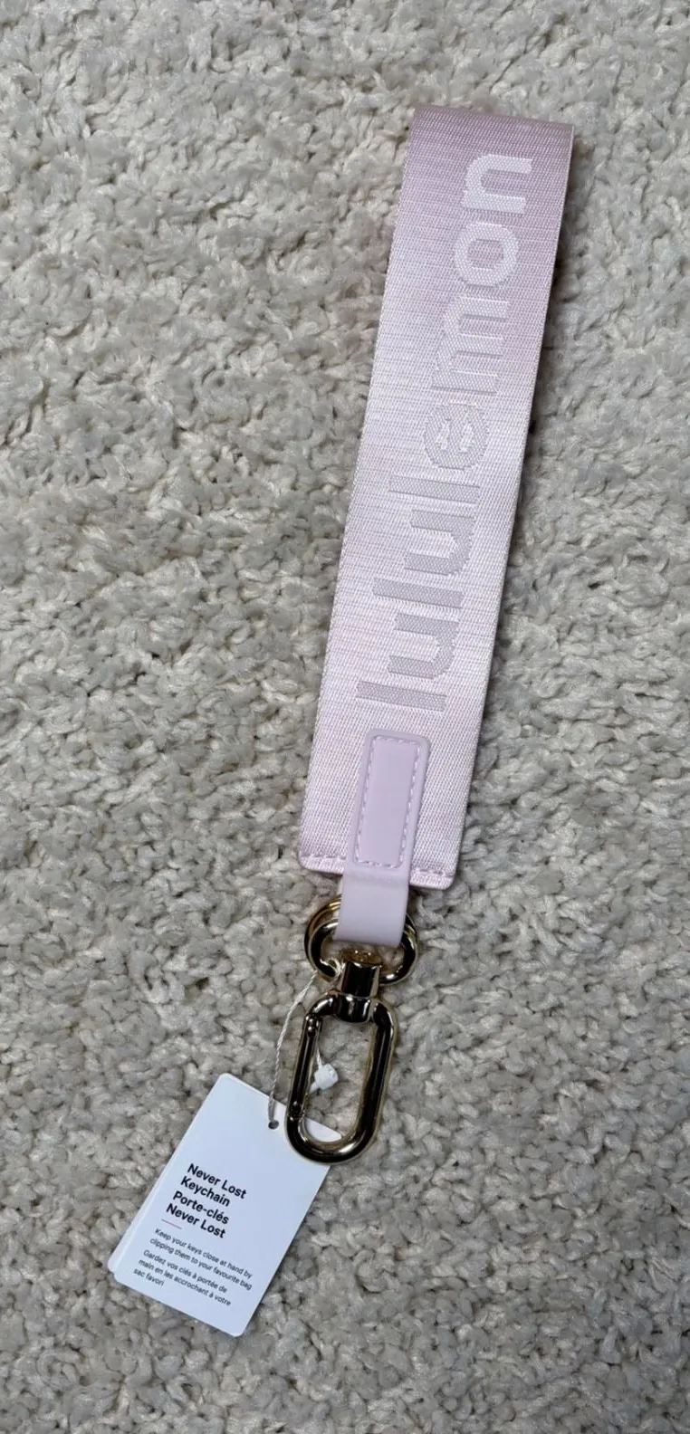 Secure your essentials with this Lululemon Never Lost keychain strap. The light pink fabric features... Show more