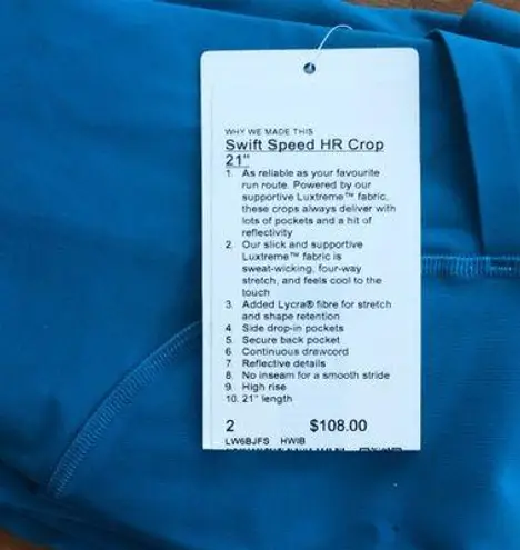 lululemon Swift Speed High-Rise Crop 21" in Hawaiian Blue - Size: 2 - New with Tags* - High Rise,... Show more