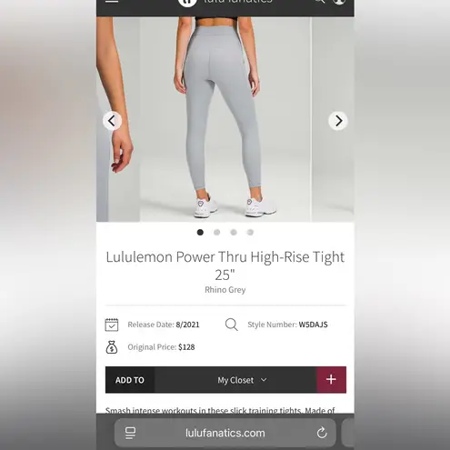 Lululemon Power Thru High-Rise Tight 25" Rhino Grey size 0 Blue - $80 - From Reilly