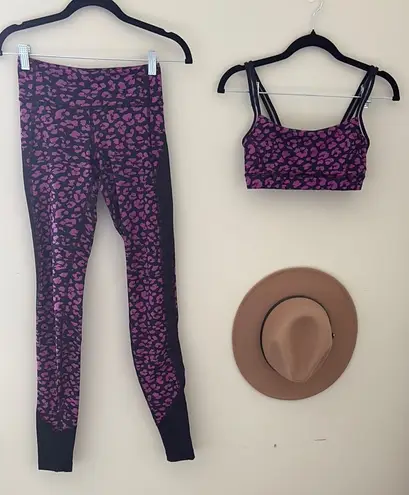 Stylish purple and black leopard print activewear set. Includes leggings and sports bra. Leggings ar... Show more