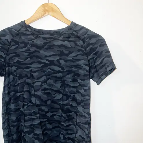 Lululemon Quick Pace Short Sleeve Sequoia Camo Print Deep Coal Black Open back Pit to pit approx: 1... Show more