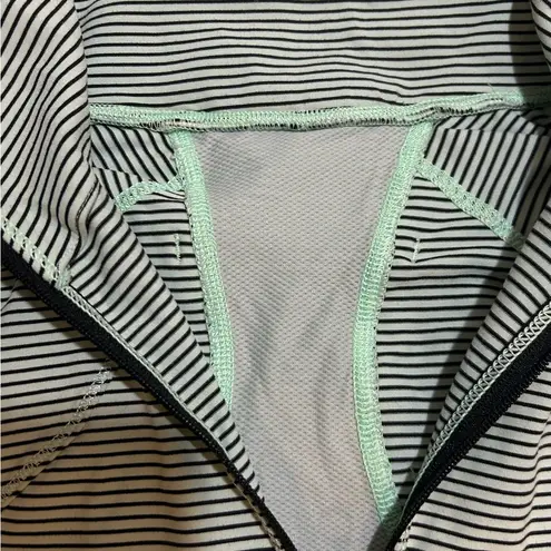Lululemon Athletica brand. Race With Grace 1/2 zip in the colorway Mini Hyper Stripe Fresh Teal / Fr... Show more