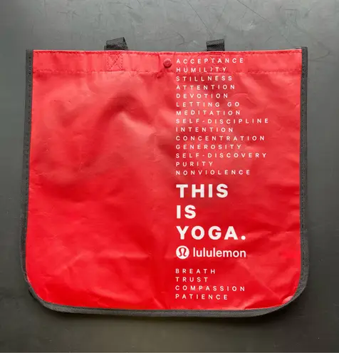 Lululemon Reusable Bag Tote Snap Closure Large Red Shopping White Logo 16" - $11 - From Jennifer