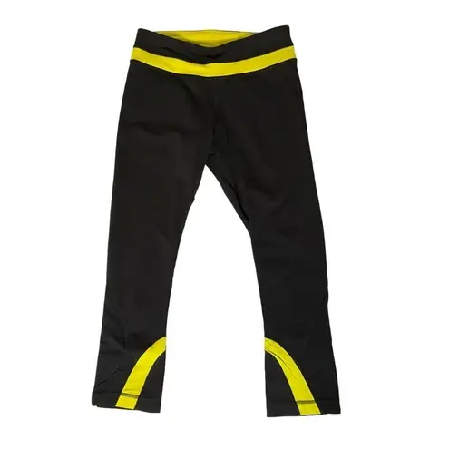 Lululemon Run Inspire crop ll black split pea crop legging 4. Black yellow Waist 12” flat. Rise 8.5”... Show more