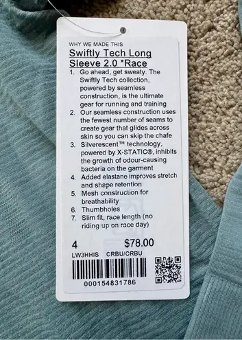 2.0 RACE LENGTH, nwt, never worn, crater blue color,