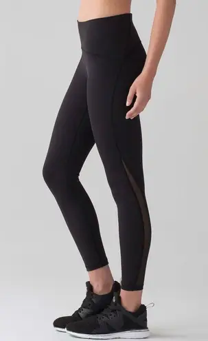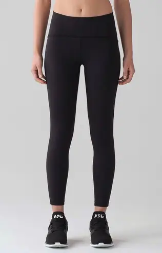 These are Lululemon Train Times 7/8 Pant 25" in size 8. The color is Black.