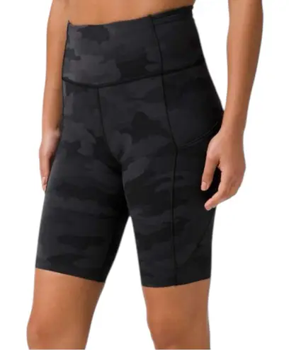Lululemon Women’s Size 8 Heritage 365 Camo Deep Coal Multi Fast And Free Biker Shorts. 10” Non-reflective
