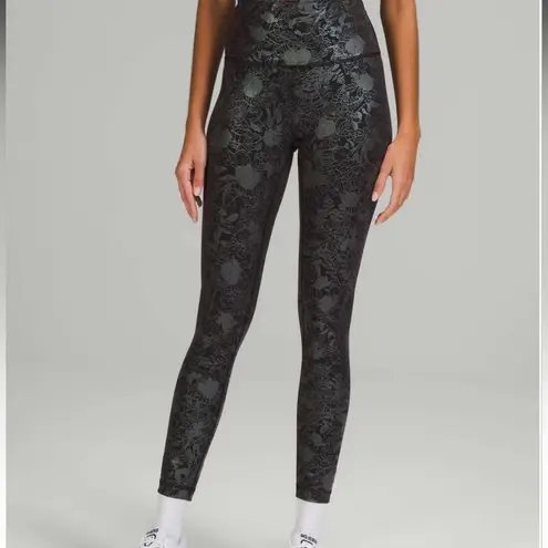 Flat measurements Waist- 10” Inseam- 25.5” Rise- 8.5” Color: Logo Flourish Black Iridescent Foil... Show more