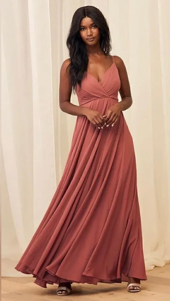 Lulus All About Love Rusty Rose Maxi Dress Size Small Color Rusty Rose PTP 20.5” Waist 13.5” Length... Show more