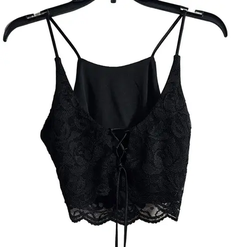 This chic black camisole from Lulu's features a delicate lace overlay and a stylish tie front. The sleeveless design and cropped length make it perfect for layering or wearing on its own. With its intricate lace detailing, this top adds a touch of elegance to any outfit.