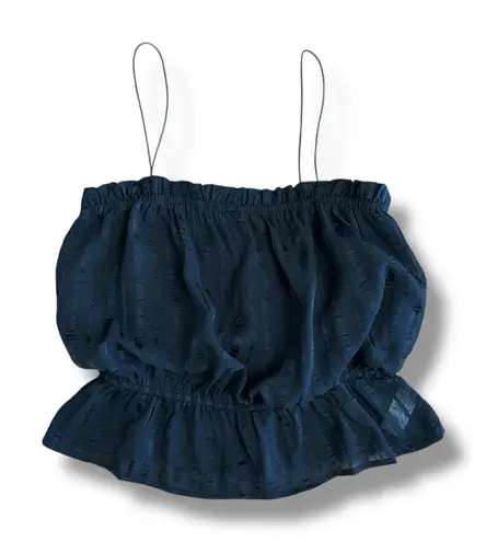 Beautiful black textured peplum cami top from Lulus (Style T89454). Features an elastic neckline and... Show more