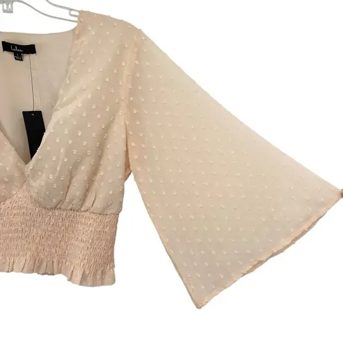 Lulu's Brightest Bliss Swiss Dot Flutter Sleeve Smocked Top Cropped Size Small. New with tags. Layin... Show more