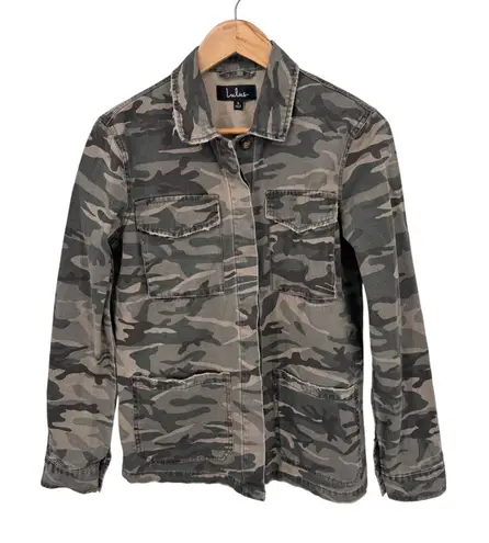 Lulus Button Front Jacket Shirt Womens Small Army Green Camo Print Cotton Pockets Distressed H... Show more