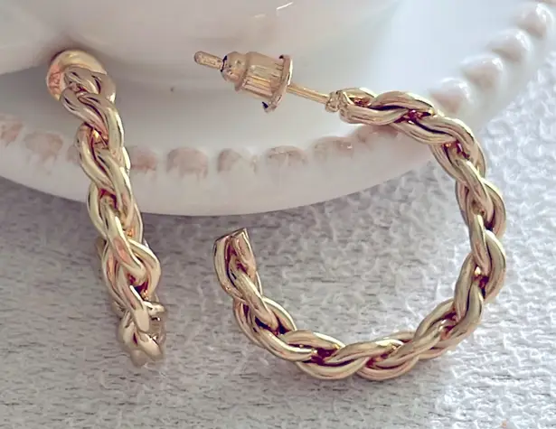 Chain open hoop huggie earrings Gold - $12 New With Tags - From Laura