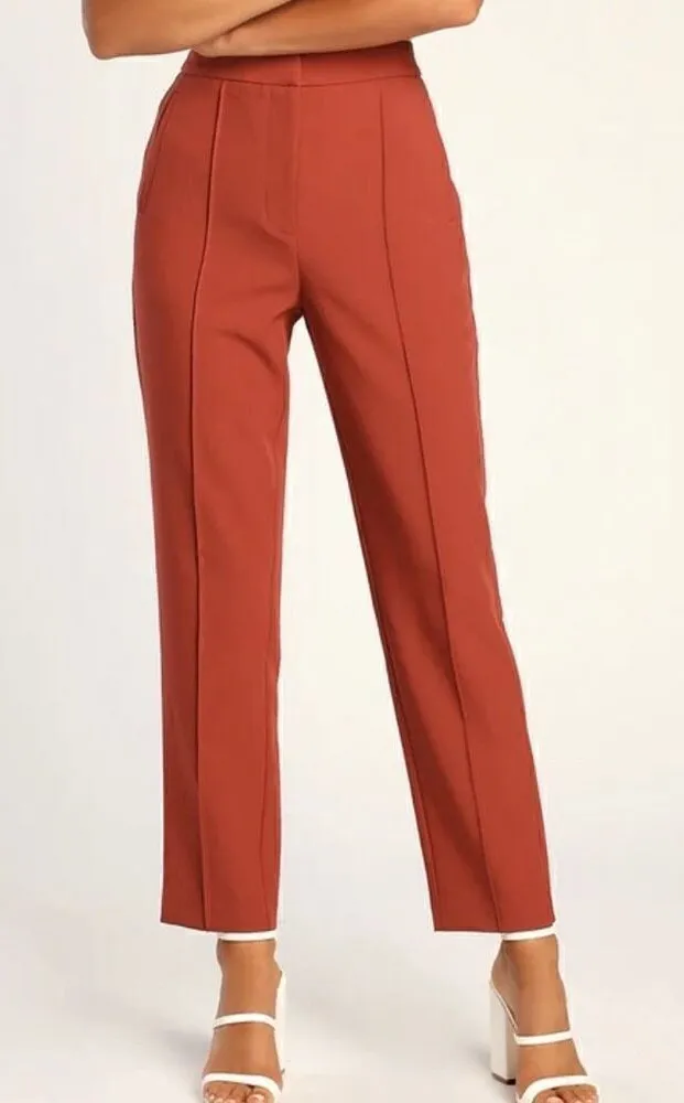 New with tags From the desk to after-hours fun, the Lulus Chic Business Rust Red High-Waisted Trous... Show more