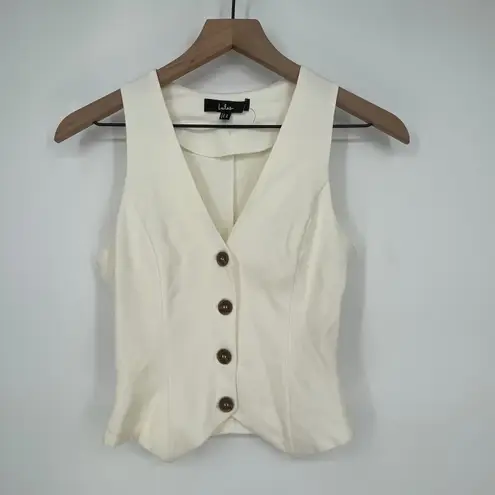 Cream button front sleeveless vest top from Lulus. This stylish vest features a flattering V-necklin... Show more