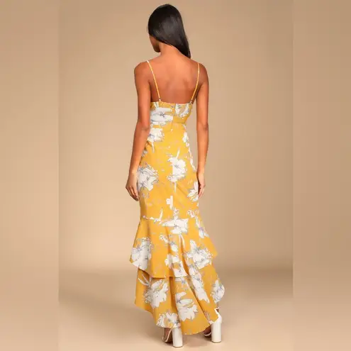 Watch your style blossom and bloom in the Lulus Darling Daylily Mustard Yellow Floral Print High-Low... Show more