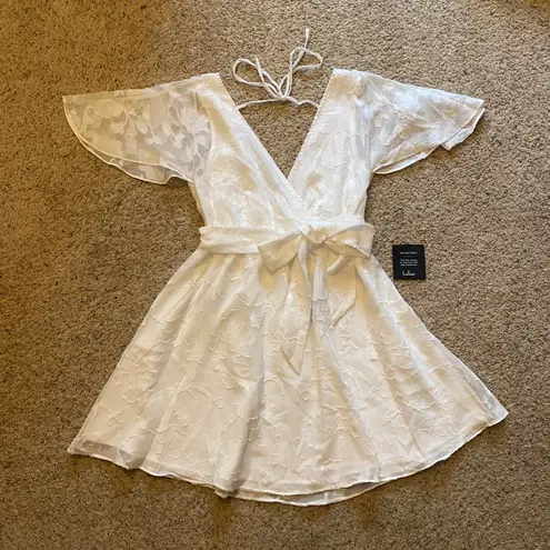 This is a Lulus Flutter Forever White Burnout Jacquard Flutter Sleeve Mini Dress in size small. This... Show more