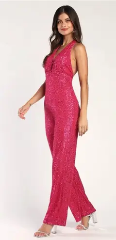 Lulus Hot Pink Sequin Star Potential Halter Jumpsuit Barbie Size XS - $25 (68% Off Retail) - From Kristen