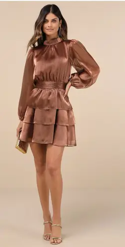 LuLus Ideal Behavior Bronze Metallic Backless Tiered Dress- New with tags still attached. Ordered fo... Show more
