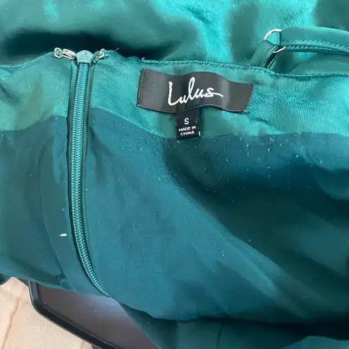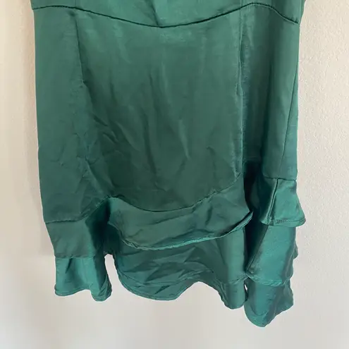 Lulu’s Emerald Green Satin Mini Dress With Ruffle Detail Size Small Some piling noted on inside of... Show more