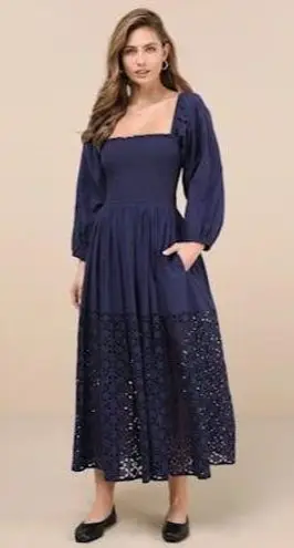 RS09_1250719 It's used, properly cleaned and in good condition Lulu’s Yarella Dark Navy Blue Smocked... Show more