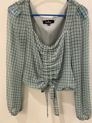 More of a light teal color; worn a couple times; great quality; cinch tie front of top for less or m... Show more