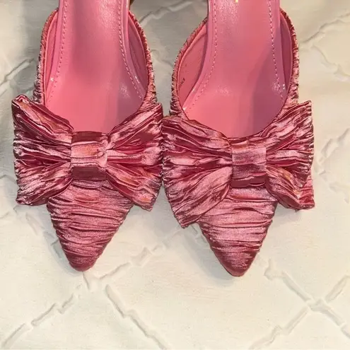Lulus Rose Pink Satin Textured Bow High Heel Mules(Size 6) Pink - $56 - From Tecasklozet