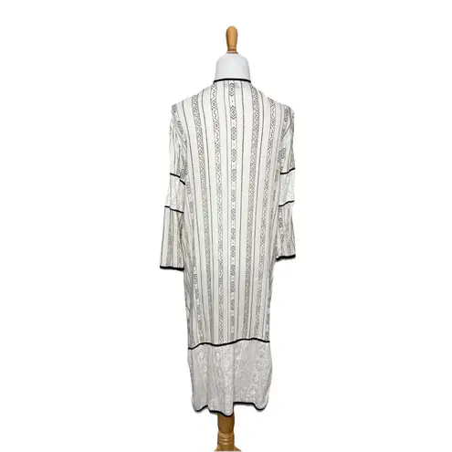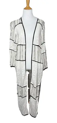Lulus Sheer White and Black Lightweight Duster Cardigan Open Front Long Maxi Size Medium. Pattern cu... Show more