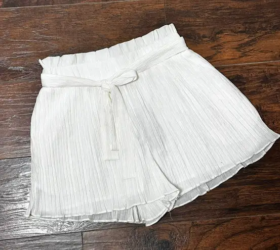 Lulus white pleated highwaisted paper bag shorts Size Medium Waistband is elastic Crinkly woven... Show more