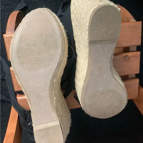 Black Lulu’s wedge sandals that lace up the leg, size 8.5, like new.