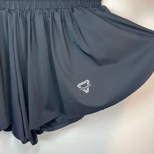 Luogongzi Shorts Black Pull On Elastic Stretch Waist 2 in 1 Flowy Shorts Lined Stretch Inner Shorts Pocket Running Athletic Yoga Women's size large Preowned in great condition. Drawcord in waistband missing. Approximate measurements: unstretched 26 in waist, 2 in inseam, 10 in rise 87% nylon 13% spandex Made in China Machine wash SKU461