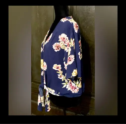 LUQ Navy Floral Tie-Up Blouse - size XSmall ***Refer to measurements. Gently warn & loved. Measurements approximately 20” from armpit to armpit x 20” long. Non-smoking home. priced to sell at as is condition. Don’t like my price, make reasonable offer! And thank you for checking my closet. Blue - $12 - From Debbie