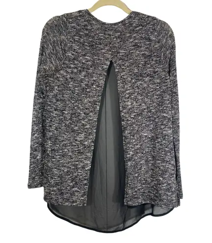 Lush Gray and Black Long Sleeve Open Cardigan with a Sheer Peekaboo Back EUC Size Small