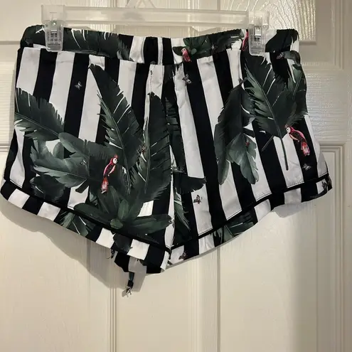 Chic mixed pattern print features black/white stripes and leafy jungle design. Soft faux silk pajama... Show more