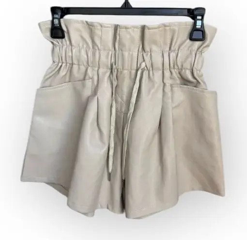 Brand: Mable Style: Paperbag Color: Beige Department: Women Size: S Material: Faux Leather Occasion: Casual Country/region of manufacture: China Closure: Drawstring Features: Elastic Waistband, Side Pockets Rise: High Condition: EUC Tags: luxury, women's casual wear, fall fashion measurement taken flat: Waist: 12” Rise: 13” Hips: 21” Inseam: 4” 0873