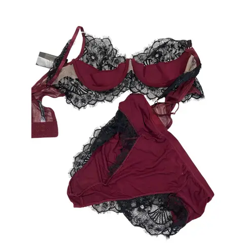 Oh La La Cheri Lingerie Set Eyelash Lace Bra with Molded Shelf Cup Matching High Waisted Panties w... Show more