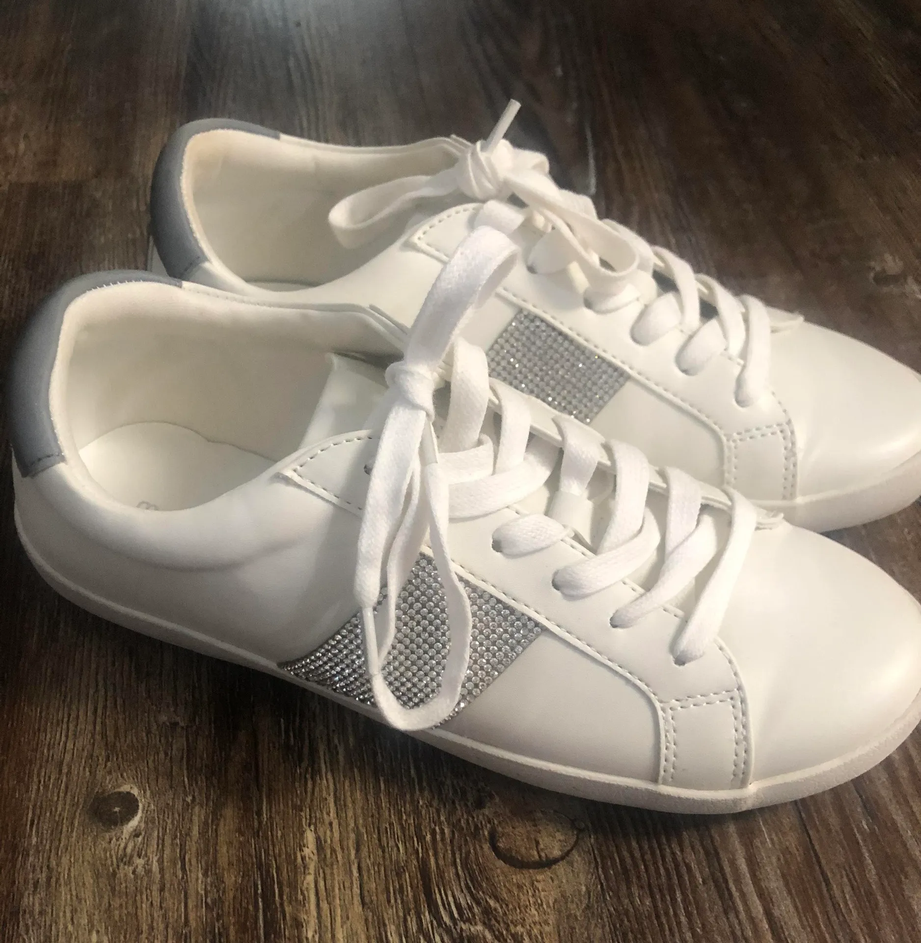 White with silver sparkle Madden girl sneakers. Worn once. No flaws. Size 7. So cute!