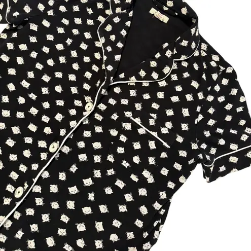 MADEWELL All Over Cat Print Button Front Bedtime Pajama Shirt Top Color: Black Material: 95% cotto... Show more