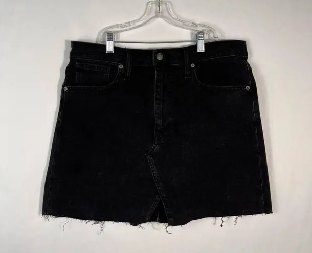 In great condition! Black denim material. Hint of distressing with the raw, unfinished hemline. Zip... Show more