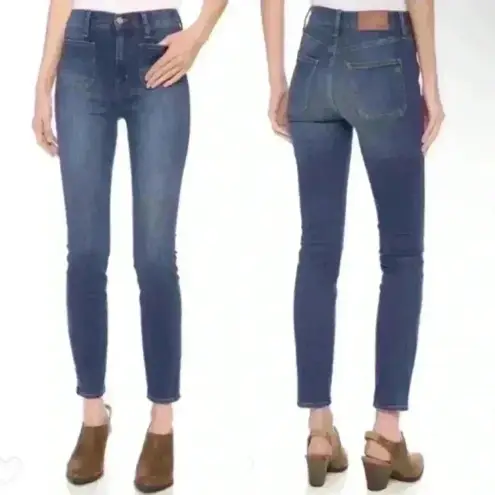 . These high rise jeans have pocket front details. In good used condition but does have some distres... Show more