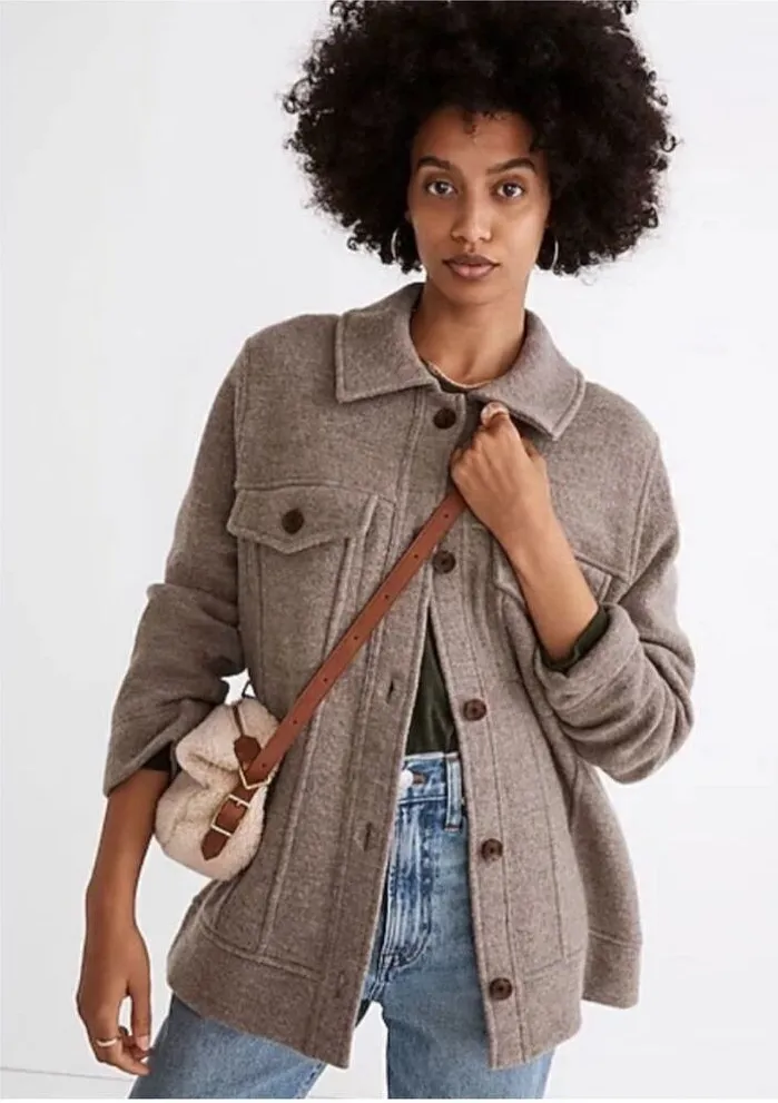 MADEWELL Boiled Wool Bridgman Sweater-Jacket Size small s Color: Heather Mink (Tan/Brown) Oversiz... Show more