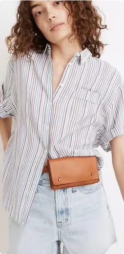 Oversized and easy, this rainbow-striped shirt has slouchy cuffed sleeves. Toss it on with some crop... Show more
