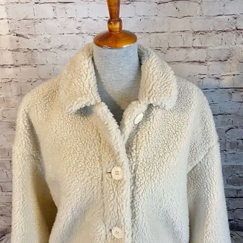 Madewell Cream Sherpa Teddy Walton Shirt Jacket Button Up Collared Size XL Approximate flat lay mea... Show more