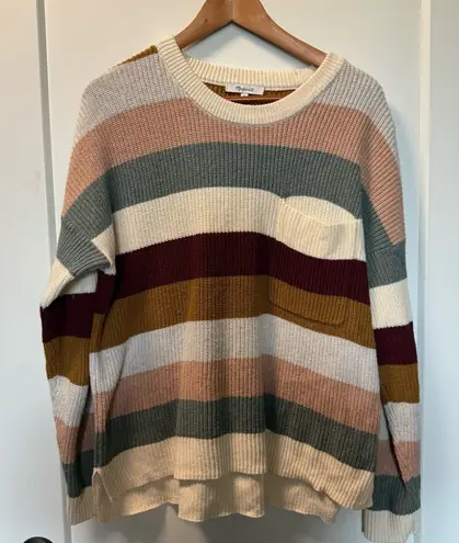 Madewell Crewneck Knit Multicolor Stripe Sweater Oversize Neutral Casual Pocket L Good Condition