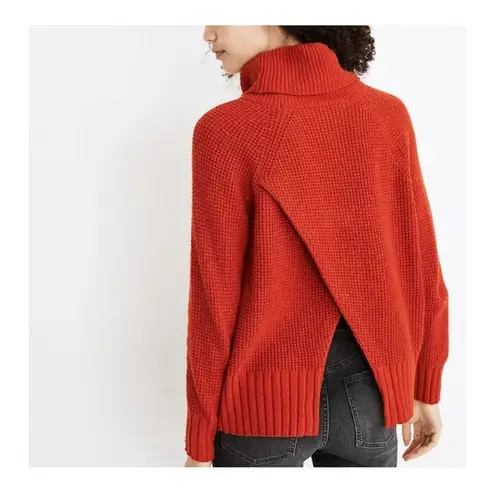 Madewell Eastbrook Turtleneck Cross Back Sweater Orange soft thick knit fabric great shape